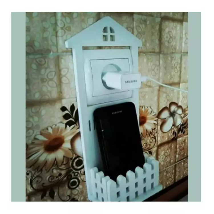 شلف جای موبایل کلبه سایز ۲۸ * ۱۳ سانت جنس pvc قابل شست وشو نگهدارنده شارژر موبایل دارای محفظه نگهداری موبایل دارای حفره مربعی شکل جهت آویز نمودن به پریز