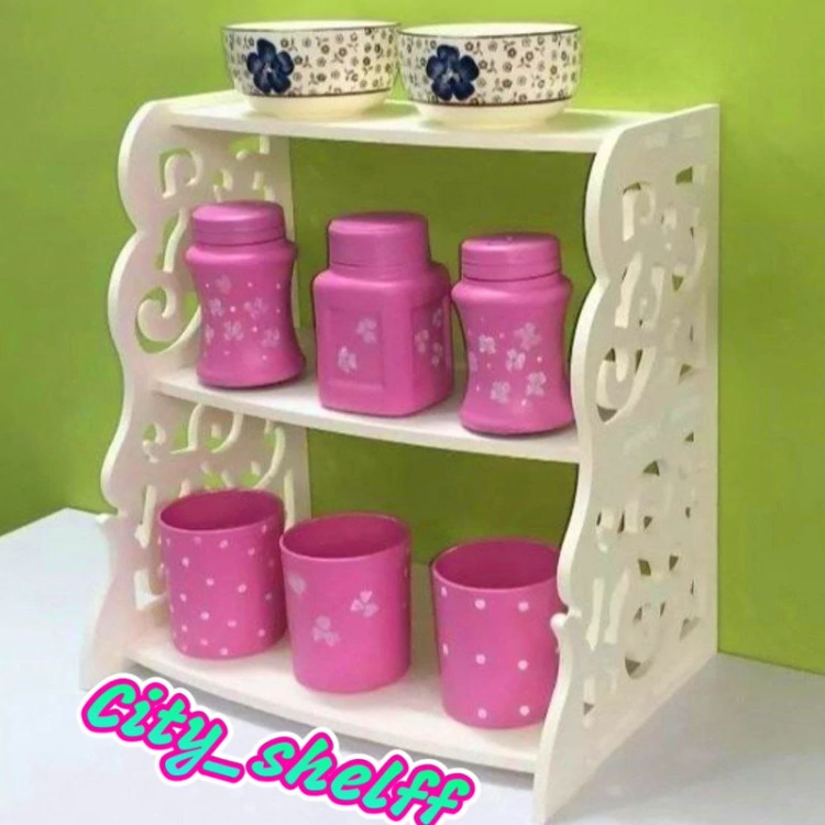 شلف چوبی جا ادویه سه طبقه رومیزی مناسب برای نگهداری وسایل آشپزخانه ، تهیه شده از جنس PVC قابل شستشو. از شلف جا ادویه می توانید در مصارف دیگر نیز استفاده کنید ، مثلا لوازم دکوری و تزئینی خود را درون آن قرار دهید. همچنین این شلف به شلف پاسماوری نیز معروف است ، تا بتوانید چایی ، قند ، شکر و حتی لیوان و استکان را درون آن نگهداری کنید.