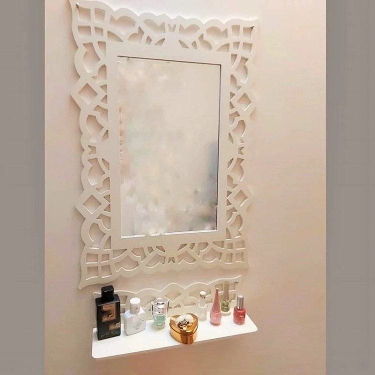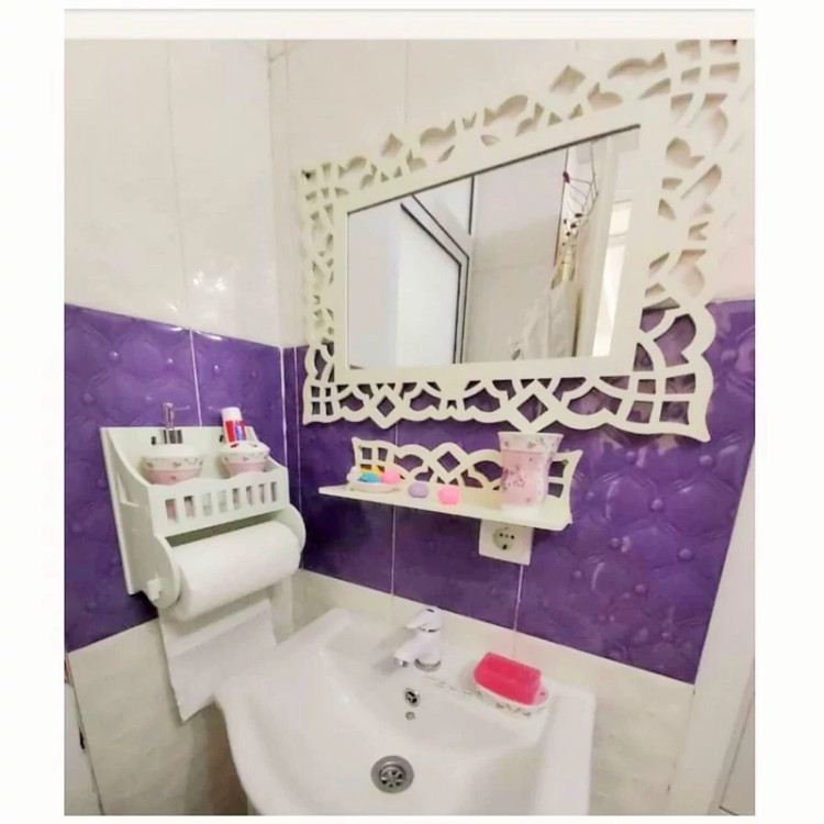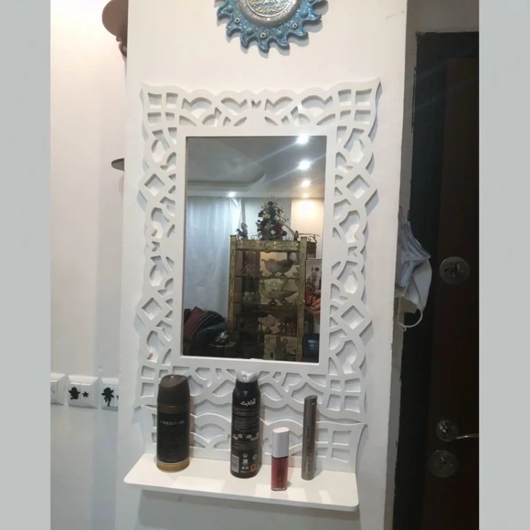 آینه مستطیل سفید با کنسول بزرگ سایز 40 در 60 سانت نوع جنس پی وی سی قابل شستشو و ضد آب ضخامت ورق 8 میل نوع برش t i