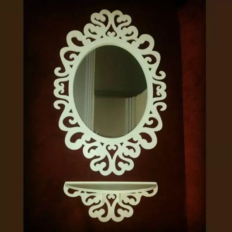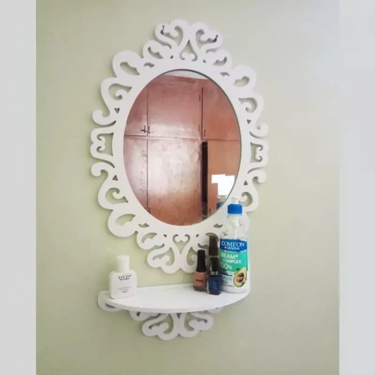 آینه بیضی با شلف زیر ضد آب و قابل شستشو درجه یک... ابعاد قاب 60 * 40 ابعاد آینه 24 * 32 ابعاد کنسول 11 * 29