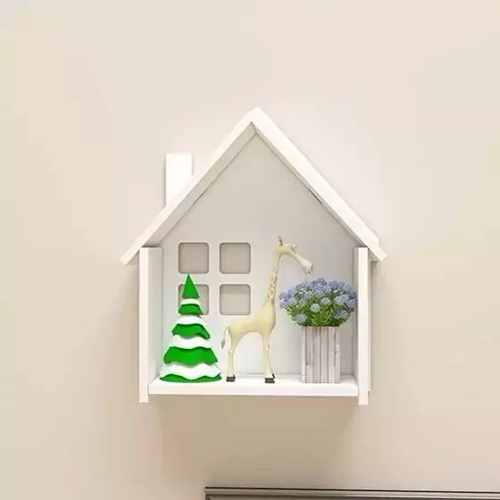شلف دیواری طرح کلبه شلف ساده و زیبایی است که مناسب دکوری های کوچک و زیبای شماست. این شلف را بصورت تکی، دو تایی، سه تایی یا پنج تایی و بیشتر روی دیوار یا ستون، دیزاین می کنند