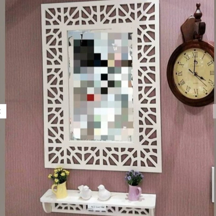 آینه مستطیل سفید با کنسول بزرگ سایز 40 در 60 سانت نوع جنس pvc ضخامت ورق 8 میل نوع برش t i