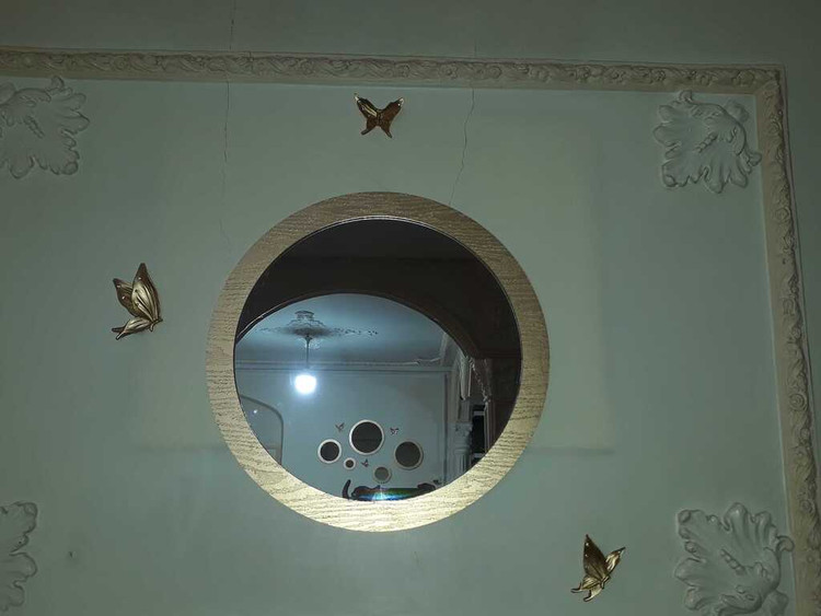 آینه گرد رنگ طلایی مناسب پذیرایی یا اتاق خواب می باشد