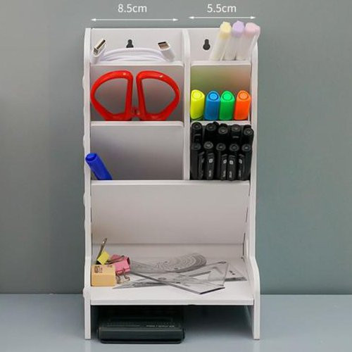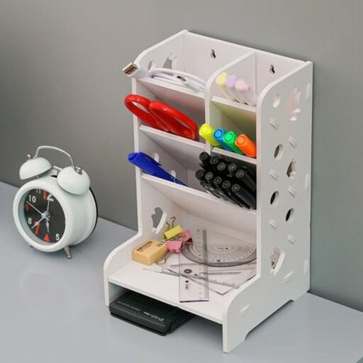طراحی نوین ، زیبا و کاربردی ابعاد : 26cm * 16cm * 17cm نوع : رومیزی با قابلیت استفاده به عنوان دیواری تولید شده از جنس PVC با کیفیت دارای 7 محفظه با ابعاد مختلف قابلیت قراردادن لوازم و وسایل کوچک متناسب با ابعاد محفظه ها به صورت مجزا و تفکیک شده ارائه شده در رنگ سفید نظم بخشیدن به لوازم و وسایل روی میز دسترسی سریع و آسان مقاوم در برابر آب و رطوبت مونتاژ شلف توسط خریدار مناسب جهت استفاده به عنوان شلف لوازم تحریر ، لوازم آرایش ، زیورآلات و ...